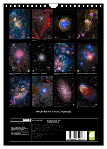 QUALITÄT - Hochwertiger Fotokalender mit 12 wunderschönen Motiven auf lichtbeständigem Bilderdruckpapier, robuste Spiralbindung mit Aufhängebügel.NACHHALTIG - deutliche Abfallreduzierung durch bedarfsgerechte Einzelstückfertigung, umweltfreundliches FSC-zertifiziertes Papier, Produktion in Deutschland, klimabewusste Logistik.PERFEKTES GESCHENK - Kalender für Freunde und Familie, für Kinder und Erwachsene, jung und alt, zu Weihnachten, Geburtstag oder zwischendurch.VIELFALT - Bildkalender in verschiedenen Formaten, z.B. DIN A5, DIN A4, DIN A3 sowie DIN A2. Ob Naturmotiv, Gemälde oder Fotos, ideal für ein persönliches Wohlfühlambiente.Farbenprächtige astronomische Objekte fotografiert von Stefan Ziegenbalg. von Autor(in): Stefan Stefan Ziegenbalg