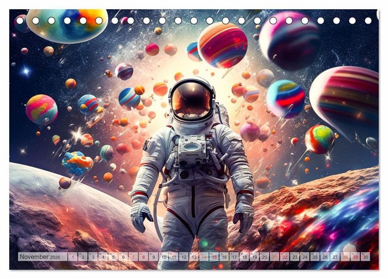 Der Wandkalender entführt dich und deine Liebsten auf eine faszinierende Reise durch das Universum. Er ist nicht nur ein Blickfang an jeder Wand, sondern auch ein perfektes Geschenk für Freunde und Bekannte, die sich für Weltraumabenteuer und Astronomie begeistern. Jeder Monat erzählt eine neue Geschichte, während dich hochauflösende Illustrationen von Astronauten, in ihren Bann ziehen. Verschenke dieses einzigartige Stück Universum an Freunde und Familie, und lass sie jeden Tag von den Wundern des Alls träumen. erstellt wurden die Illustrationen mit KI und Photoshop.