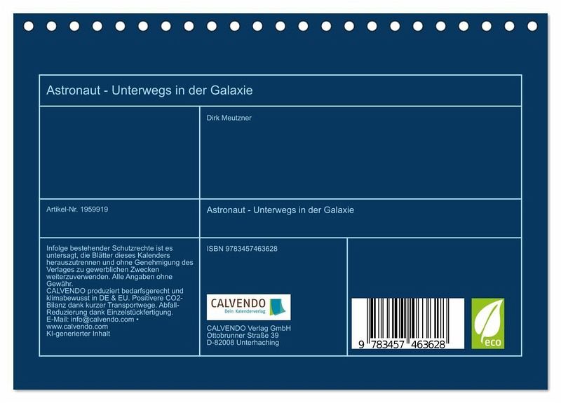 QUALITÄT - Hochwertiger Fotokalender mit 12 wunderschönen Motiven auf lichtbeständigem Bilderdruckpapier, robuste Spiralbindung.NACHHALTIG - deutliche Abfallreduzierung durch bedarfsgerechte Einzelstückfertigung, umweltfreundliches FSC-zertifiziertes Papier, Produktion in Deutschland, klimabewusste Logistik.PERFEKTES GESCHENK - Kalender für Freunde und Familie, für Kinder und Erwachsene, jung und alt, zu Weihnachten, Geburtstag oder zwischendurch.VIELFALT - Bildkalender in verschiedenen Formaten, z.B. DIN A5, DIN A4, DIN A3 sowie DIN A2. Ob Naturmotiv, Gemälde oder Fotos, ideal für ein persönliches Wohlfühlambiente.Tauche ein in die atemberaubende Welt des Weltraums und lass dich von beeindruckenden Astronautenillustrationen inspirieren. von Autor(in): Dirk Meutzner