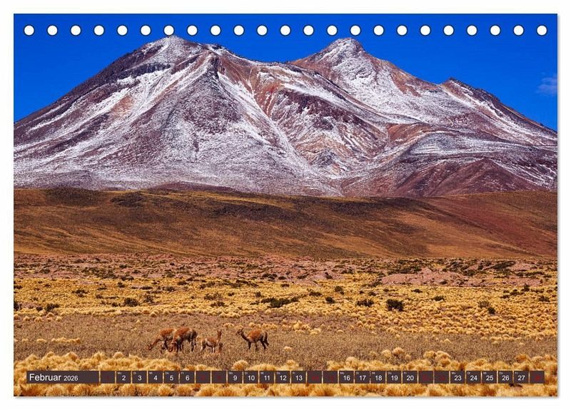 Februar: Vicuñas vor dem Vulcano Miscanti