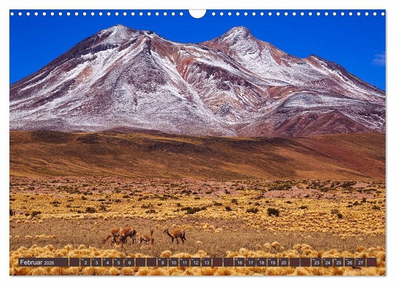 Februar: Vicuñas vor dem Vulcano Miscanti