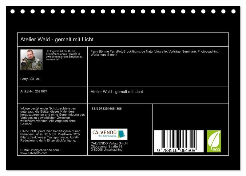 QUALITÄT - Hochwertiger Fotokalender mit 12 wunderschönen Motiven auf lichtbeständigem Bilderdruckpapier, robuste Spiralbindung.NACHHALTIG - deutliche Abfallreduzierung durch bedarfsgerechte Einzelstückfertigung, umweltfreundliches FSC-zertifiziertes Papier, Produktion in Deutschland, klimabewusste Logistik.PERFEKTES GESCHENK - Kalender für Freunde und Familie, für Kinder und Erwachsene, jung und alt, zu Weihnachten, Geburtstag oder zwischendurch.VIELFALT - Bildkalender in verschiedenen Formaten, z.B. DIN A5, DIN A4, DIN A3 sowie DIN A2. Ob Naturmotiv, Gemälde oder Fotos, ideal für ein persönliches Wohlfühlambiente.Naturfotografie der Spitzenklasse - ohne Computereffekte! von Autor(in): Ferry BÖHME