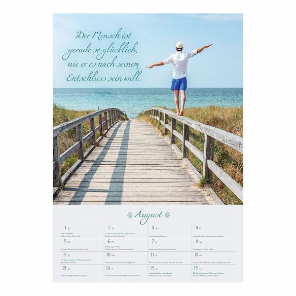 Die Bilder dieses stimmungsvollen Poster-Kalenders sind Momentaufnahmen des Glücks. Die fantastischen Fotografien und Lebensweisheiten laden dazu ein, aus dem Alltag auszubrechen, die Zeit in den Weiten der Momentaufnahmen zu vergessen und Ruhe und Kraft zu tanken für alle Herausforderungen des Lebens. Ein praktisches 14-tägiges Kalendarium bietet Raum für Gedanken und Verabredungen.- mit praktischen Eintragungsmöglichkeiten- modern gestaltetes Innenlayout- 14-tägiges Kalendarium- besinnliche Impulse
