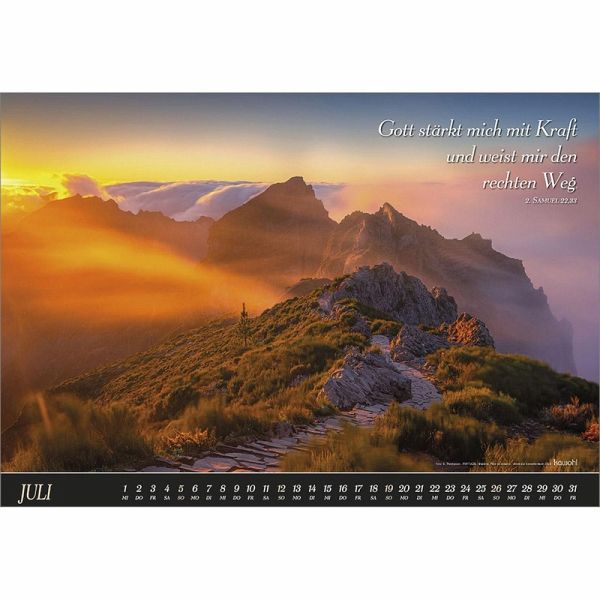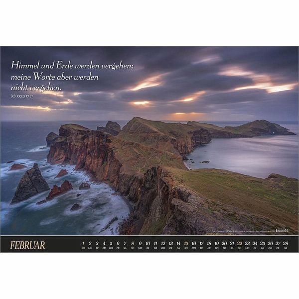 Leuchtende Bilder im PANORAMA-FormatGrandiose Landschaftsaufnahmen voller WEITE - KLARHEIT - WUNDER - FARBENPRACHT lassen Sie staunen über die Schönheit und Vielfalt unserer Welt. Klare Bibelworte unterstreichen die Bildwirkung und möchten Sie durch das Jahr begleiten.Panorama-Wand-Kalender:- mit Bibelworten- mit grandiosen Landschaftsaufnahmen- Kunstdruck- Jubiläumsausgabe - Dieser Kalender erscheint bereits zum 15. Mal!