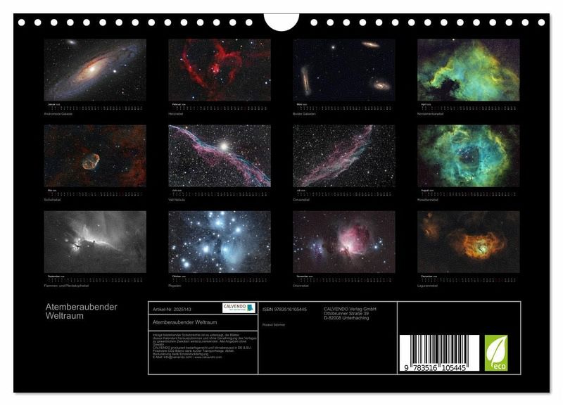 QUALITÄT - Hochwertiger Fotokalender mit 12 wunderschönen Motiven auf lichtbeständigem Bilderdruckpapier, robuste Spiralbindung mit Aufhängebügel.NACHHALTIG - deutliche Abfallreduzierung durch bedarfsgerechte Einzelstückfertigung, umweltfreundliches FSC-zertifiziertes Papier, Produktion in Deutschland, klimabewusste Logistik.PERFEKTES GESCHENK - Kalender für Freunde und Familie, für Kinder und Erwachsene, jung und alt, zu Weihnachten, Geburtstag oder zwischendurch.VIELFALT - Bildkalender in verschiedenen Formaten, z.B. DIN A5, DIN A4, DIN A3 sowie DIN A2. Ob Naturmotiv, Gemälde oder Fotos, ideal für ein persönliches Wohlfühlambiente.Astrofotografie von Roland Störmer von Autor(in): Rolande