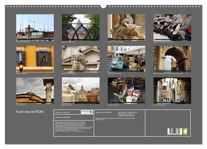 QUALITÄT - Hochwertiger Fotokalender mit 12 wunderschönen Motiven auf lichtbeständigem Bilderdruckpapier, robuste Spiralbindung mit Aufhängebügel.NACHHALTIG - deutliche Abfallreduzierung durch bedarfsgerechte Einzelstückfertigung, umweltfreundliches FSC-zertifiziertes Papier, Produktion in Deutschland, klimabewusste Logistik.PERFEKTES GESCHENK - Kalender für Freunde und Familie, für Kinder und Erwachsene, jung und alt, zu Weihnachten, Geburtstag oder zwischendurch.VIELFALT - Bildkalender in verschiedenen Formaten, z.B. DIN A5, DIN A4, DIN A3 sowie DIN A2. Ob Naturmotiv, Gemälde oder Fotos, ideal für ein persönliches Wohlfühlambiente.Rom aus besonderen, nicht alltäglichen Sichtweisen von Autor(in): Brigitte Dürr