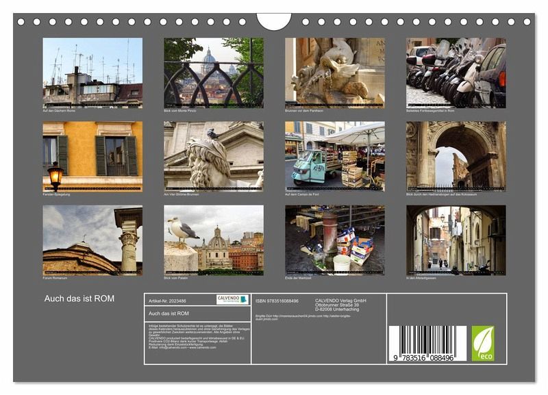 QUALITÄT - Hochwertiger Fotokalender mit 12 wunderschönen Motiven auf lichtbeständigem Bilderdruckpapier, robuste Spiralbindung mit Aufhängebügel.NACHHALTIG - deutliche Abfallreduzierung durch bedarfsgerechte Einzelstückfertigung, umweltfreundliches FSC-zertifiziertes Papier, Produktion in Deutschland, klimabewusste Logistik.PERFEKTES GESCHENK - Kalender für Freunde und Familie, für Kinder und Erwachsene, jung und alt, zu Weihnachten, Geburtstag oder zwischendurch.VIELFALT - Bildkalender in verschiedenen Formaten, z.B. DIN A5, DIN A4, DIN A3 sowie DIN A2. Ob Naturmotiv, Gemälde oder Fotos, ideal für ein persönliches Wohlfühlambiente.Rom aus besonderen, nicht alltäglichen Sichtweisen von Autor(in): Brigitte Dürr