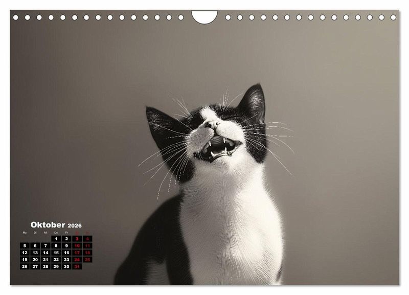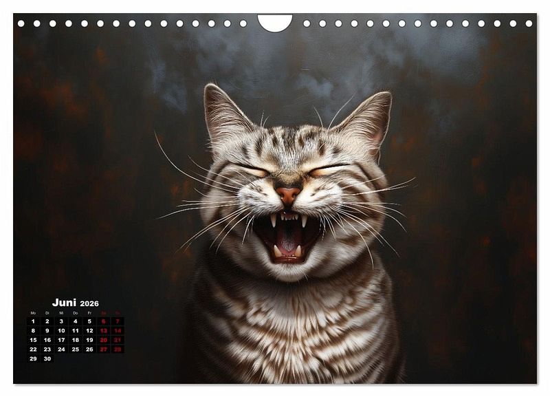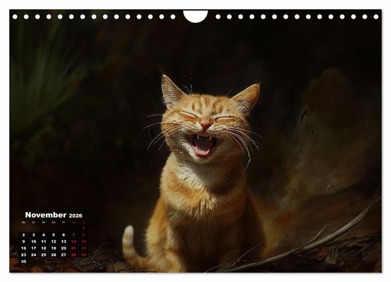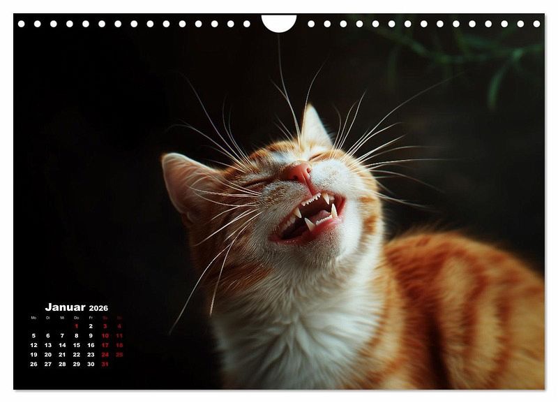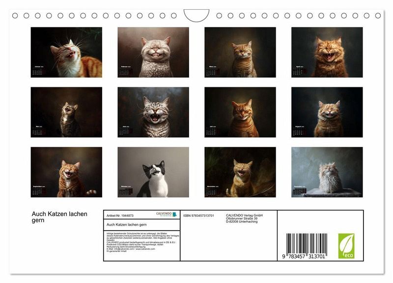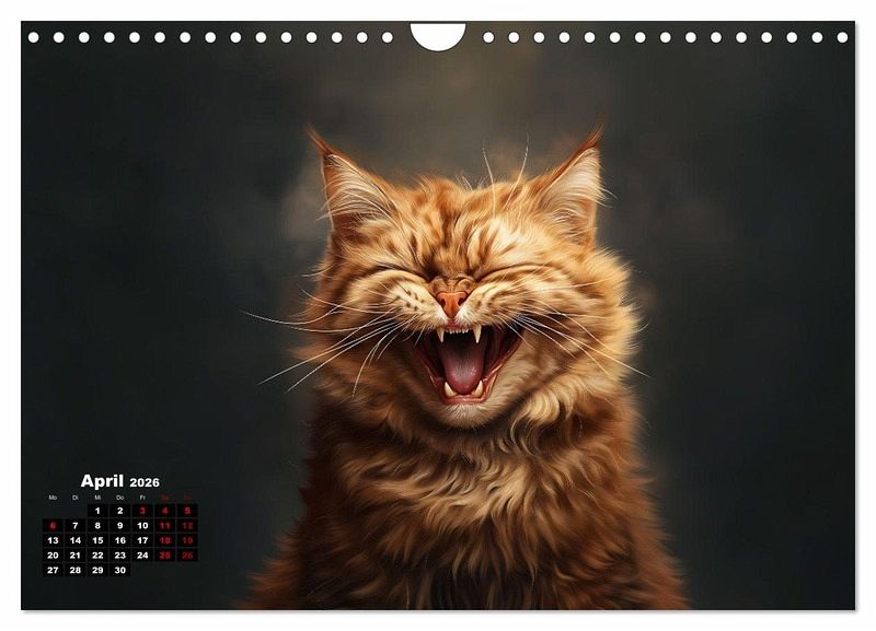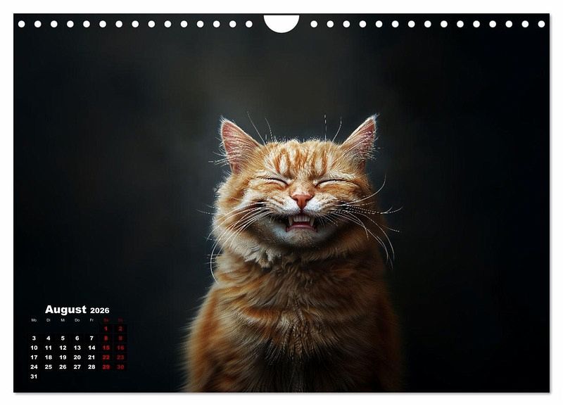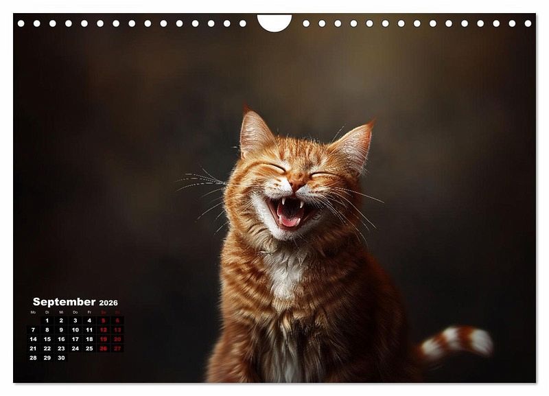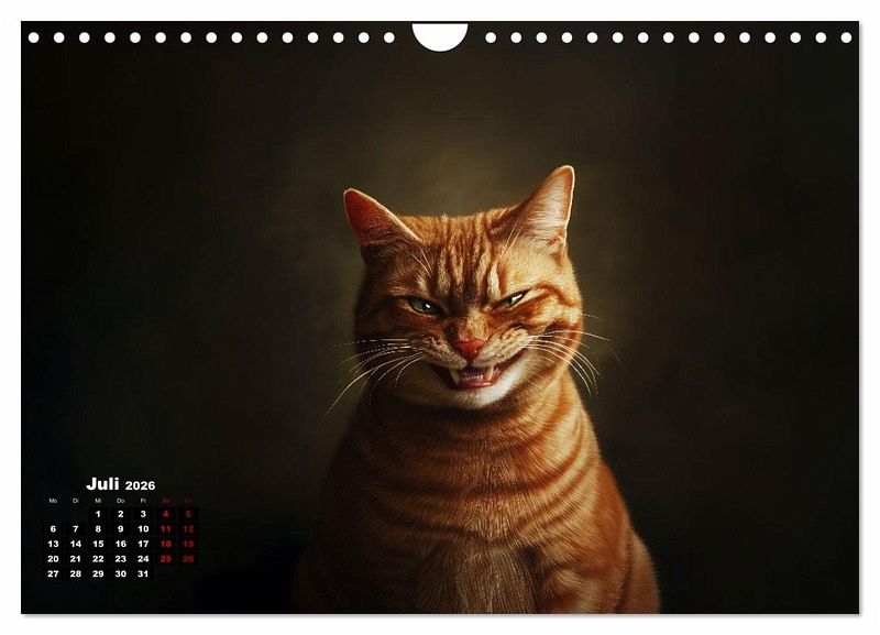 Katzen sind auch nur Menschen. Also lachen sie auch. Leider sieht man es selten. Vielleicht lachen sie nur nachts? Der Kalender zeigt Katzen von ihrer fröhlichsten