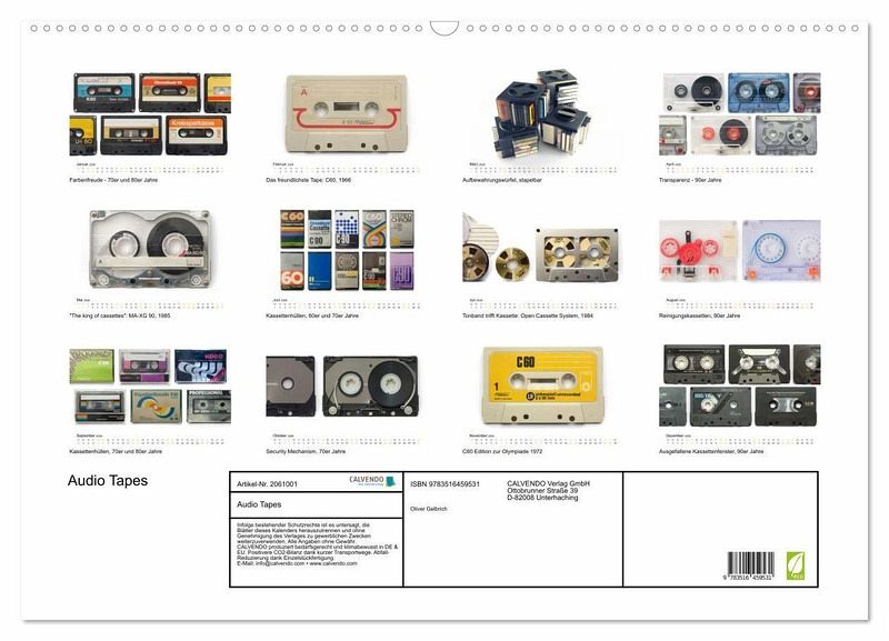 Tauche ein in die analoge Welt der Musik! Der Kalender "audio tapes - Audio Kompakt-Kassetten Nostalgie" präsentiert auf 12 liebevoll gestalteten Kalenderblättern rund 50 originale Audiokassetten aus den 60ern bis zu den 00ern. Jede Seite ist eine Zeitreise durch die Vielfalt der Musikkultur - entdecke legendäre Designs, persönliche Mixtapes und echte Raritäten. Die detailreichen Fotos wecken Erinnerungen an das Basteln eigener Kassetten, das charakteristische Rauschen und die Vorfreude beim Zurückspulen. Perfekt für Musikliebhaber, Retro-Fans und alle, die das analoge Lebensgefühl schätzen. Hol dir ein Stück Musikgeschichte nach Hause und erlebe Nostalgie zum Aufhängen - jeden Monat aufs Neue!
