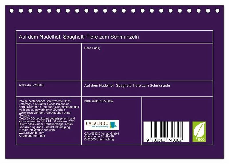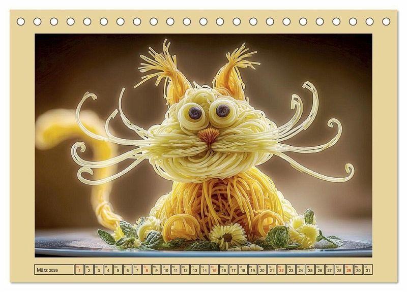 Willkommen auf dem Nudelhof! In diesem Kalender werden klassische Bauernhoftiere auf humorvolle Weise neu interpretiert - nämlich komplett aus Spaghetti, Makkaroni und Penne. Jede Illustration wurde mithilfe künstlicher Intelligenz liebevoll gestaltet und verwandelt einfache Teigwaren in witzige und überraschend charmante Kreaturen. Ob Spaghetti-Kuh, Nudel-Hahn oder Pasta-Hase - jede Kalenderseite lädt zum Schmunzeln ein und sorgt garantiert für Gesprächsstoff in Küche, Büro oder Wohnzimmer.