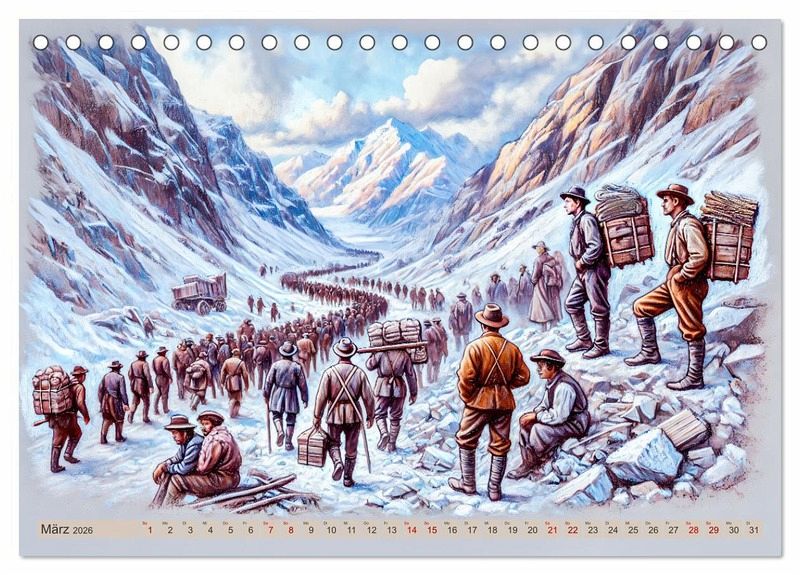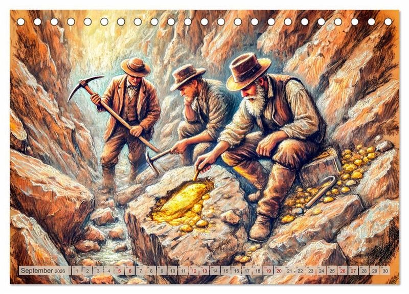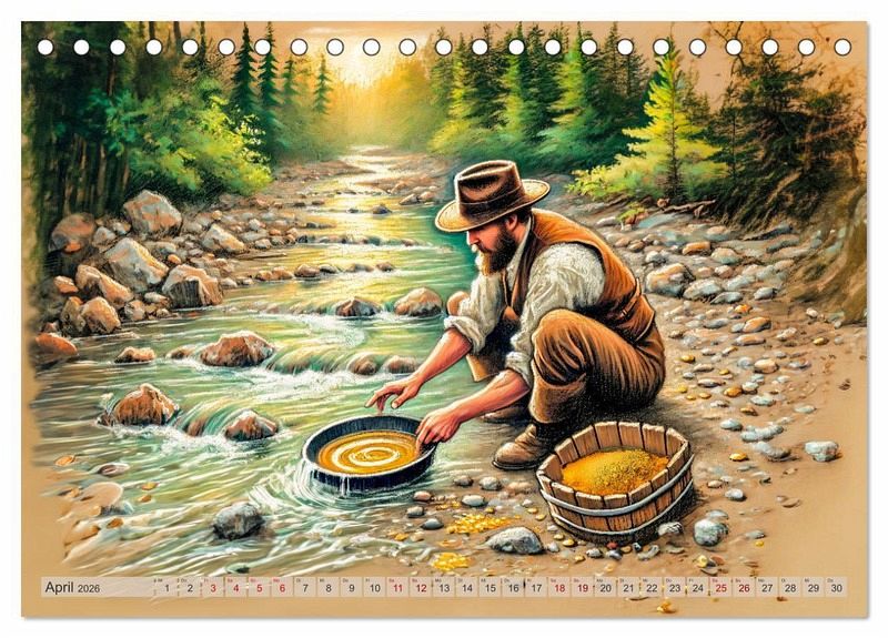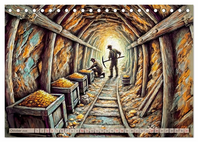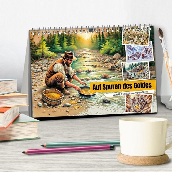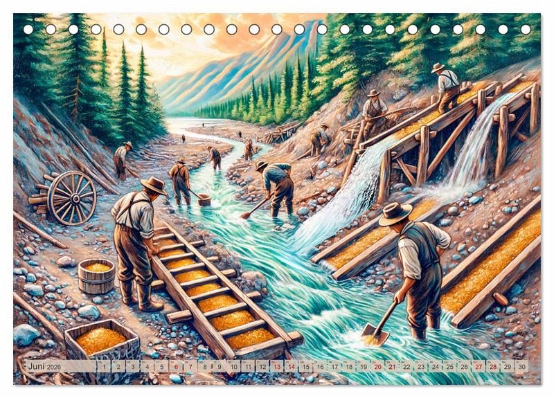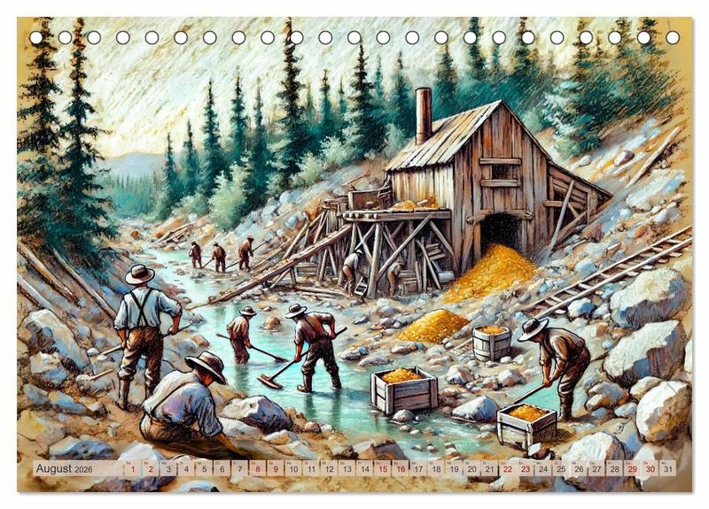 Erleben Sie die faszinierende Geschichte des Goldes in diesem einzigartigen Kalender "Auf den Spuren des Goldes - Vom Goldrausch am Yukon River". Von den abenteuerlichen Anfängen des Goldrauschs im Yukon über die harten Zeiten der Siedler und Goldwäscher bis hin zum Abbau des Goldes im Berg. Jeder Monat bietet Ihnen atemberaubende KI-generierter Illustrationen, die die historische Ereignisse Entwicklungen eindrucksvoll darstellen. Tauchen Sie ein in die Welt des Goldes und verfolgen Sie die Spuren dieses kostbaren Metalls durch die Jahrhunderte.