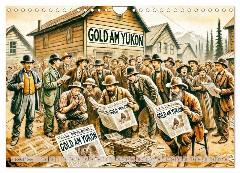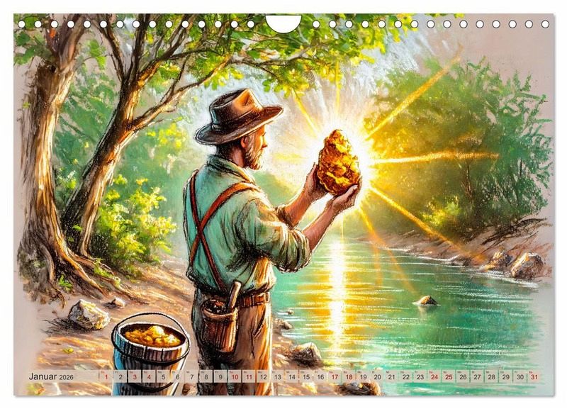 Erleben Sie die faszinierende Geschichte des Goldes in diesem einzigartigen Kalender "Auf den Spuren des Goldes - Vom Goldrausch am Yukon River". Von den abenteuerlichen Anfängen des Goldrauschs im Yukon über die harten Zeiten der Siedler und Goldwäscher bis hin zum Abbau des Goldes im Berg. Jeder Monat bietet Ihnen atemberaubende KI-generierter Illustrationen, die die historische Ereignisse Entwicklungen eindrucksvoll darstellen. Tauchen Sie ein in die Welt des Goldes und verfolgen Sie die Spuren dieses kostbaren Metalls durch die Jahrhunderte.