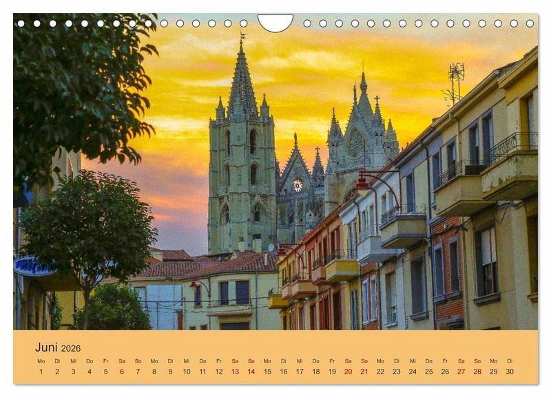 Juni: Die Kathedrale von León beim Sonnenuntergang.