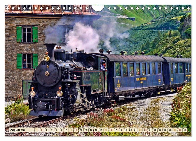 August: Dampfbahn Furka Bergstrecke Einfahrt Gletsch