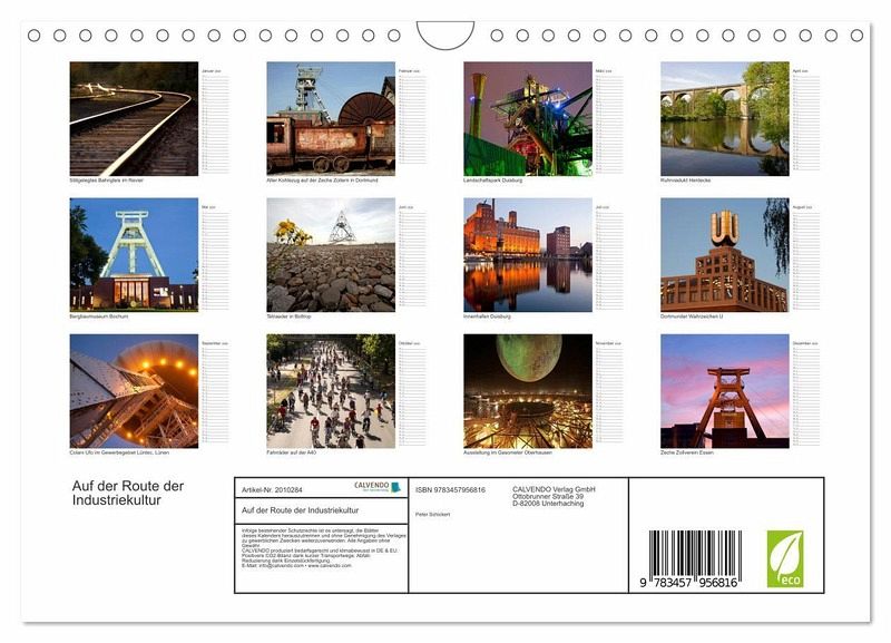 QUALITÄT - Hochwertiger Fotokalender mit 12 wunderschönen Motiven auf lichtbeständigem Bilderdruckpapier, robuste Spiralbindung mit Aufhängebügel.NACHHALTIG - deutliche Abfallreduzierung durch bedarfsgerechte Einzelstückfertigung, umweltfreundliches FSC-zertifiziertes Papier, Produktion in Deutschland, klimabewusste Logistik.PERFEKTES GESCHENK - Kalender für Freunde und Familie, für Kinder und Erwachsene, jung und alt, zu Weihnachten, Geburtstag oder zwischendurch.VIELFALT - Bildkalender in verschiedenen Formaten, z.B. DIN A5, DIN A4, DIN A3 sowie DIN A2. Ob Naturmotiv, Gemälde oder Fotos, ideal für ein persönliches Wohlfühlambiente.Die Faszination der Route der Industriekultur in einem Kalender von Peter Schickert von Autor(in): Peter Schickert