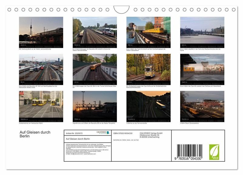QUALITÄT - Hochwertiger Fotokalender mit 12 wunderschönen Motiven auf lichtbeständigem Bilderdruckpapier, robuste Spiralbindung mit Aufhängebügel.NACHHALTIG - deutliche Abfallreduzierung durch bedarfsgerechte Einzelstückfertigung, umweltfreundliches FSC-zertifiziertes Papier, Produktion in Deutschland, klimabewusste Logistik.PERFEKTES GESCHENK - Kalender für Freunde und Familie, für Kinder und Erwachsene, jung und alt, zu Weihnachten, Geburtstag oder zwischendurch.VIELFALT - Bildkalender in verschiedenen Formaten, z.B. DIN A5, DIN A4, DIN A3 sowie DIN A2. Ob Naturmotiv, Gemälde oder Fotos, ideal für ein persönliches Wohlfühlambiente.Eisenbahn, Straßenbahn, U-Bahn und S-Bahn in Berlin von Autor(in): Jan van Dyk