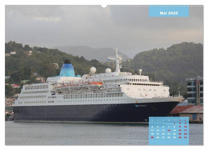 Der perfekte Kalender für Fans von Kreuzfahrten! Lassen Sie sich mit diesen Schiffen durch das Jahr begleiten: AIDAluna, Boudicca, Nieuw Amsterdam, Azura, Saga Sapphire und Ventura. Die Fotos entstanden in der Karibik. Neuauflage mit aktualisiertem Design.