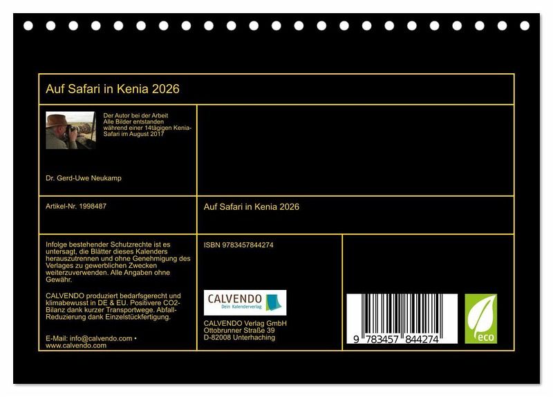 QUALITÄT - Hochwertiger Fotokalender mit 12 wunderschönen Motiven auf lichtbeständigem Bilderdruckpapier, robuste Spiralbindung.NACHHALTIG - deutliche Abfallreduzierung durch bedarfsgerechte Einzelstückfertigung, umweltfreundliches FSC-zertifiziertes Papier, Produktion in Deutschland, klimabewusste Logistik.PERFEKTES GESCHENK - Kalender für Freunde und Familie, für Kinder und Erwachsene, jung und alt, zu Weihnachten, Geburtstag oder zwischendurch.VIELFALT - Bildkalender in verschiedenen Formaten, z.B. DIN A5, DIN A4, DIN A3 sowie DIN A2. Ob Naturmotiv, Gemälde oder Fotos, ideal für ein persönliches Wohlfühlambiente.Landschaften und Tiere aus Kenias Süden von Autor(in): Gerd-Uwe Neukamp