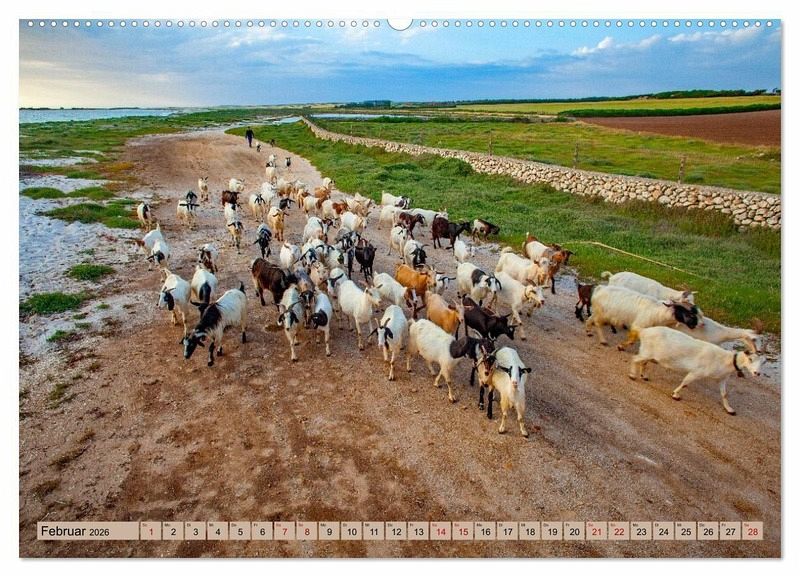 Februar: Ziegenherde auf dem Weg zur nächsten Weide, Sardien
