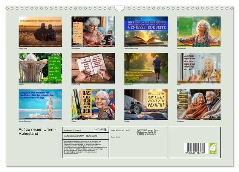 Der Ruhestand ist mehr als ein Abschied ,er ist der Beginn einer neuen Reise. Dieser Kalender verbindet stimmungsvolle Bilder mit inspirierenden Sprüchen, die Mut machen, zum Innehalten anregen und zum Schmunzeln bringen. Monat für Monat begleiten Sie Worte voller Lebensfreude auf Ihrem Weg zu neuen Ufern. Dieser Kalender wurde mit Unterstützung der KI erstellt.