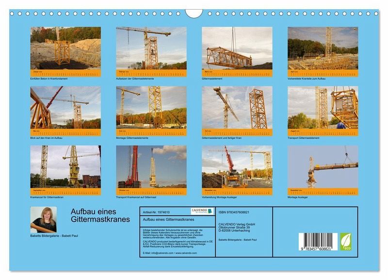 QUALITÄT - Hochwertiger Fotokalender mit 12 wunderschönen Motiven auf lichtbeständigem Bilderdruckpapier, robuste Spiralbindung mit Aufhängebügel.NACHHALTIG - deutliche Abfallreduzierung durch bedarfsgerechte Einzelstückfertigung, umweltfreundliches FSC-zertifiziertes Papier, Produktion in Deutschland, klimabewusste Logistik.PERFEKTES GESCHENK - Kalender für Freunde und Familie, für Kinder und Erwachsene, jung und alt, zu Weihnachten, Geburtstag oder zwischendurch.VIELFALT - Bildkalender in verschiedenen Formaten, z.B. DIN A5, DIN A4, DIN A3 sowie DIN A2. Ob Naturmotiv, Gemälde oder Fotos, ideal für ein persönliches Wohlfühlambiente.Montage eines Gittermastkranes auf einer Baustelle von Autor(in): Babett's Bildergalerie