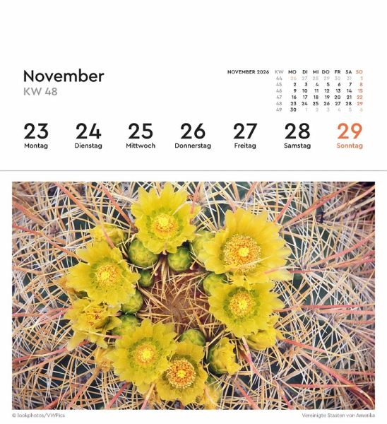 53 fantastische Fotografien in hochwertigem Druck können als Postkarten gesammelt oder verschickt werden. Natürlich enthält der Kalender einen praktischen wöchentlichen Terminplaner.