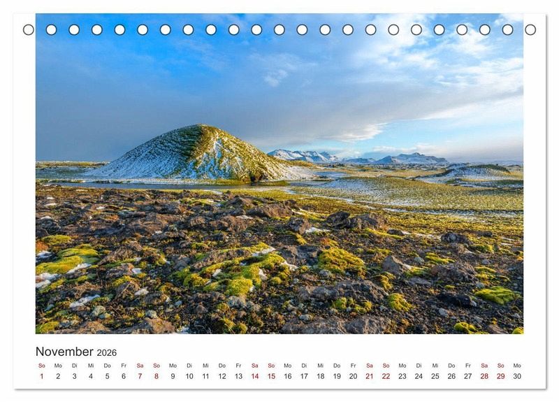 Mach einen Road Trip im Herbst - dann ist alles aufregend! Entdecke die Highlights der Insel aus Feuer und Eis entlang der Ringstraße. Lass dich von Islands Landschaft faszinieren und in den Bann ziehen. Jeder Winkel von Island ist unglaublich schön. Moose und Flechten zeigen in der klaren Herbstsonne ihre prächtigsten Farben. Mit dem Blau des Himmels, der klaren Luft und den Spiegelungen im Wasser zeigen sich traumhaft schöne Farbspiele. Der erste Schnee des Jahres fasziniert besonders, da dieser die Landschaft wie Puderzucker bedeckt. Dieser Kalender soll dich mit auf eine Reise rund um Island nehmen und dich durch das Jahr begleiten.