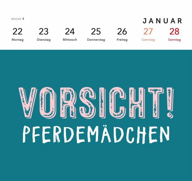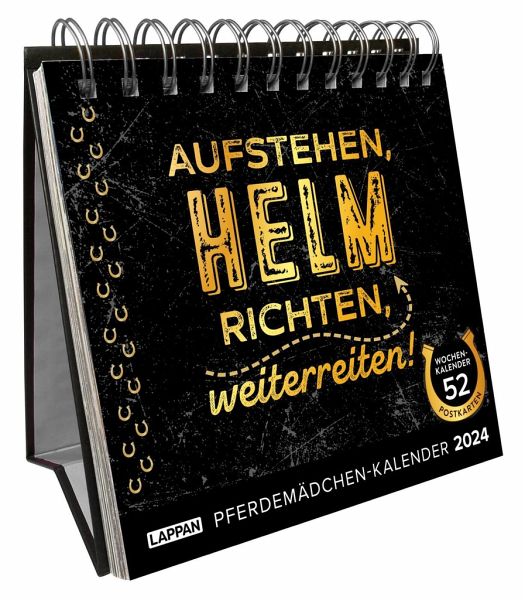 Einmal Pferdemädchen, immer Pferdemädchen! Dieser Postkartenkalender im hochwertigen Ringbuch-Aufsteller enthält 53 Postkarten mit Sprüchen für selbstbewusste Pferdenärrinnen.