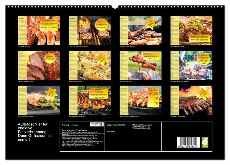 PREMIUM-LINIE - Brillanter Fotokalender mit 12 wunderschönen Motiven, Kunstdruck in Hochglanz in Museumsqualität.QUALITÄT - edle Materialien, stabile Rückwand mit 2 innovativen Einstecktaschen für eine optimale Präsentation an der Wand.NACHHALTIG - deutliche Abfallreduzierung durch bedarfsgerechte Einzelstückfertigung, umweltfreundliches FSC-zertifiziertes Papier, Produktion in Deutschland, klimabewusste Logistik.PERFEKTES GESCHENK - Kalender für Freunde und Familie, für Kinder und Erwachsene, jung und alt, zu Weihnachten, Geburtstag oder zwischendurch.Grillen macht das ganze Jahr über Spaß und bringt Menschen zusammen! von Autor(in): Rose Hurley