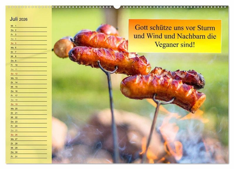 Grillen geht immer! Ein lustiger Grill-Kalender mit schönen Bildern von lecker und knusprig gegrillten Würstchen, Frikadellen und Fleisch. Mit witzigen Sprüchen versehen, ist er ein perfektes Geschenk für alle Grillmeister. Zudem gibt es viel Platz für Notizen und Termine, um anstehende Grillfeste und gemütliche Abende am Feuer nicht zu vergessen.