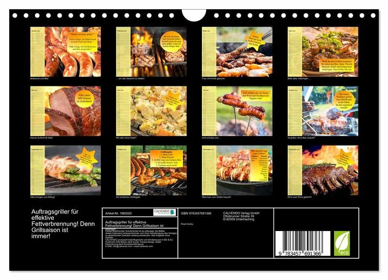 QUALITÄT - Hochwertiger Fotokalender mit 12 wunderschönen Motiven auf lichtbeständigem Bilderdruckpapier, robuste Spiralbindung mit Aufhängebügel.NACHHALTIG - deutliche Abfallreduzierung durch bedarfsgerechte Einzelstückfertigung, umweltfreundliches FSC-zertifiziertes Papier, Produktion in Deutschland, klimabewusste Logistik.PERFEKTES GESCHENK - Kalender für Freunde und Familie, für Kinder und Erwachsene, jung und alt, zu Weihnachten, Geburtstag oder zwischendurch.VIELFALT - Bildkalender in verschiedenen Formaten, z.B. DIN A5, DIN A4, DIN A3 sowie DIN A2. Ob Naturmotiv, Gemälde oder Fotos, ideal für ein persönliches Wohlfühlambiente.Grillen macht das ganze Jahr über Spaß und bringt Menschen zusammen! von Autor(in): Rose Hurley