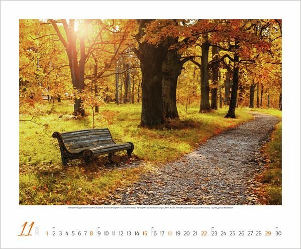 Beim Betrachten der harmonischen Landschaftsfotos in diesem Kalender fühlt man sich ein bisschen wie bei einer Meditation. Die Aufnahmen voller Poesie entspannen die Seele und lösen die Gedanken - wie eine nebenwirkungsfreie Medizin gegen Alltagshektik und Stress.