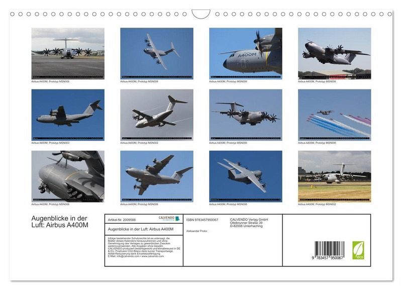 QUALITÄT - Hochwertiger Fotokalender mit 12 wunderschönen Motiven auf lichtbeständigem Bilderdruckpapier, robuste Spiralbindung mit Aufhängebügel.NACHHALTIG - deutliche Abfallreduzierung durch bedarfsgerechte Einzelstückfertigung, umweltfreundliches FSC-zertifiziertes Papier, Produktion in Deutschland, klimabewusste Logistik.PERFEKTES GESCHENK - Kalender für Freunde und Familie, für Kinder und Erwachsene, jung und alt, zu Weihnachten, Geburtstag oder zwischendurch.VIELFALT - Bildkalender in verschiedenen Formaten, z.B. DIN A5, DIN A4, DIN A3 sowie DIN A2. Ob Naturmotiv, Gemälde oder Fotos, ideal für ein persönliches Wohlfühlambiente.Bilder des Airbus A400M Prototypen von Autor(in): Aleksandar Prokic