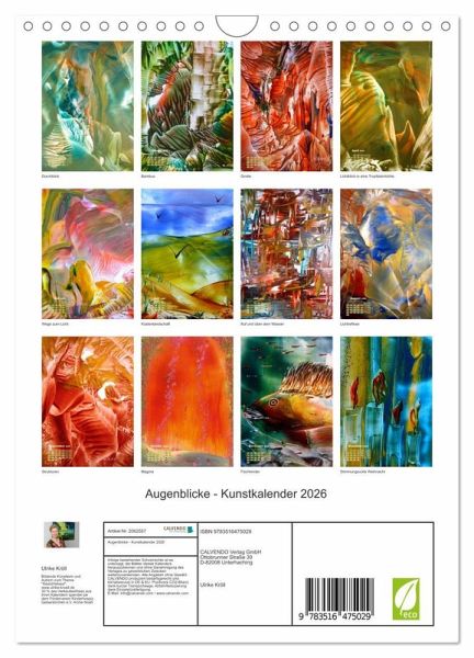 QUALITÄT - Hochwertiger Fotokalender mit 12 wunderschönen Motiven auf lichtbeständigem Bilderdruckpapier, robuste Spiralbindung mit Aufhängebügel.NACHHALTIG - deutliche Abfallreduzierung durch bedarfsgerechte Einzelstückfertigung, umweltfreundliches FSC-zertifiziertes Papier, Produktion in Deutschland, klimabewusste Logistik.PERFEKTES GESCHENK - Kalender für Freunde und Familie, für Kinder und Erwachsene, jung und alt, zu Weihnachten, Geburtstag oder zwischendurch.VIELFALT - Bildkalender in verschiedenen Formaten, z.B. DIN A5, DIN A4, DIN A3 sowie DIN A2. Ob Naturmotiv, Gemälde oder Fotos, ideal für ein persönliches Wohlfühlambiente.Erfreuen Sie sich das ganze Jahr über an dezent farbenfrohen Motiven ... von Autor(in): Ulrike Kröll