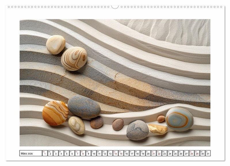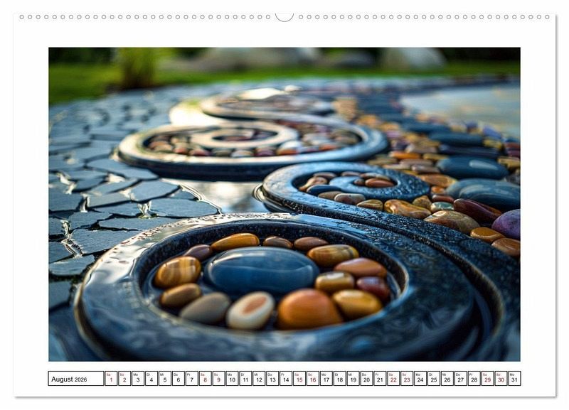 Tauchen Sie ein in die Welt der Zen-Gärten und genießen Sie jeden Monat atemberaubende Bilder von harmonischen Sandwellen, meditativen Mustern und steiniger Balance. Unser Kalender ist eine Hommage an die entspannende Wirkung dieser kunstvollen Gärten und bringt ihre Ruhe und Gelassenheit in Ihr Zuhause.
