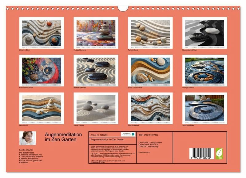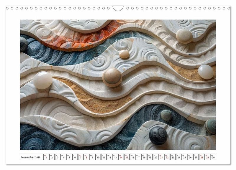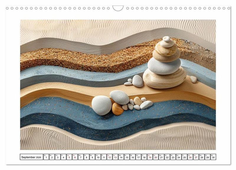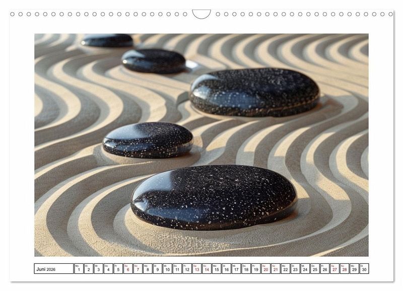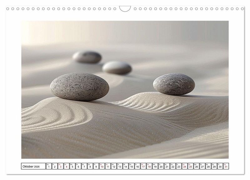 Tauchen Sie ein in die Welt der Zen-Gärten und genießen Sie jeden Monat atemberaubende Bilder von harmonischen Sandwellen, meditativen Mustern und steiniger Balance. Unser Kalender ist eine Hommage an die entspannende Wirkung dieser kunstvollen Gärten und bringt ihre Ruhe und Gelassenheit in Ihr Zuhause.