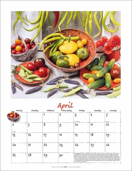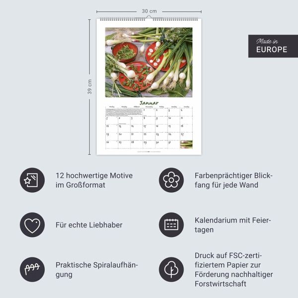 - Diesem sinnlichen Fest kann niemand widerstehen: Die Genuss-Fotos von Minze, Holunder, Vanille & Co. machen Appetit- Frische Kräuter und aromatische Gewürze in bunten Arrangements: harmonische Food-Fotografien und kleine Pflanzenkunde von der beliebten Fotografin Rita Bellmann - Ein Blickfang für jede Küche: Dieser Wandplaner macht Lust aufs Kochen und bietet viel Platz für Eintragungen- Das Auge isst mit: der farbenfrohe Jahres-Wandkalender 2026 im Format 30 x 39 cm zeigt Zutaten von ihrer schönsten Seite- Vielfältige Fotokalender, die begeistern: die Küchenkalender von Weingarten im Athesia Kalenderverlag