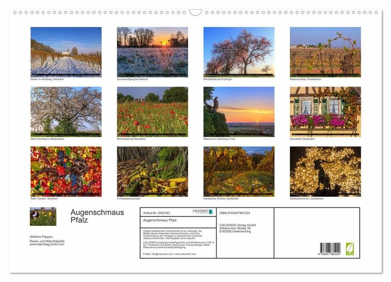 Kommen Sie mit auf eine Bilderreise durch die Jahreszeiten der Pfalz und genießen Sie diesen Augenschmaus ein ganzes Jahr lang von einem Kalenderblatt zum nächsten.