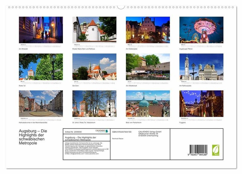 PREMIUM-LINIE - Brillanter Fotokalender mit 12 wunderschönen Motiven, Kunstdruck in Hochglanz in Museumsqualität.QUALITÄT - edle Materialien, stabile Rückwand mit 2 innovativen Einstecktaschen für eine optimale Präsentation an der Wand.NACHHALTIG - deutliche Abfallreduzierung durch bedarfsgerechte Einzelstückfertigung, umweltfreundliches FSC-zertifiziertes Papier, Produktion in Deutschland, klimabewusste Logistik.PERFEKTES GESCHENK - Kalender für Freunde und Familie, für Kinder und Erwachsene, jung und alt, zu Weihnachten, Geburtstag oder zwischendurch.Die wichtigsten Sehenswürdigkeiten Augsburgs von Autor(in): Reinhold Ratzer