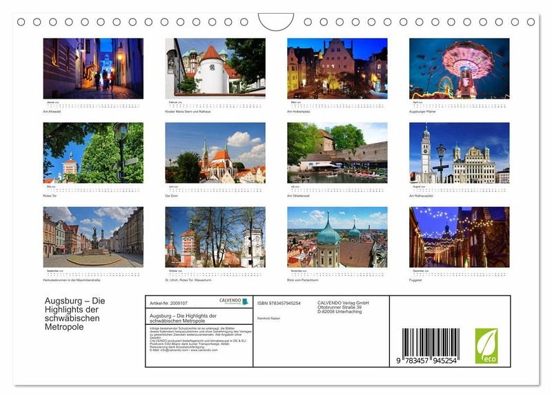 QUALITÄT - Hochwertiger Fotokalender mit 12 wunderschönen Motiven auf lichtbeständigem Bilderdruckpapier, robuste Spiralbindung mit Aufhängebügel.NACHHALTIG - deutliche Abfallreduzierung durch bedarfsgerechte Einzelstückfertigung, umweltfreundliches FSC-zertifiziertes Papier, Produktion in Deutschland, klimabewusste Logistik.PERFEKTES GESCHENK - Kalender für Freunde und Familie, für Kinder und Erwachsene, jung und alt, zu Weihnachten, Geburtstag oder zwischendurch.VIELFALT - Bildkalender in verschiedenen Formaten, z.B. DIN A5, DIN A4, DIN A3 sowie DIN A2. Ob Naturmotiv, Gemälde oder Fotos, ideal für ein persönliches Wohlfühlambiente.Die wichtigsten Sehenswürdigkeiten Augsburgs von Autor(in): Reinhold Ratzer