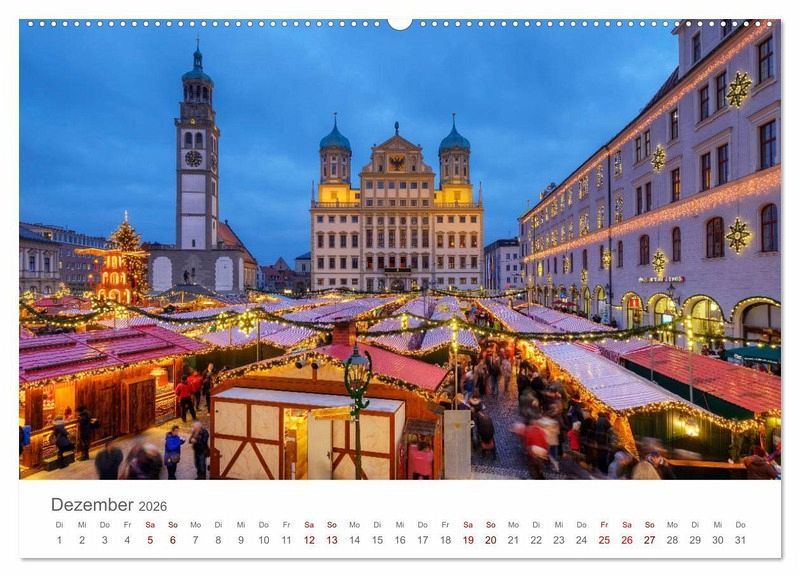 Dezember: Christkindlmarkt mit Perlachturm am Rathausplatz