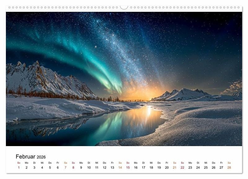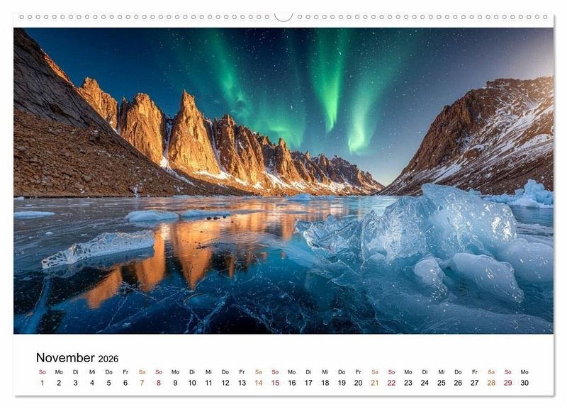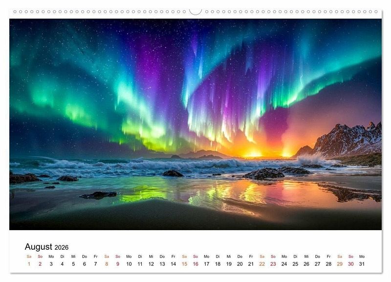 Tauchen Sie ein in die Magie der nördlichsten Nächte - von zarten grünen Schleiern bis zu kraftvoll tanzenden Lichtbändern, die wie flüssige Magie über den Himmel ziehen. Dieser Kalender zeigt das Polarlicht in all seinen Facetten, leuchtend über dem endlosen Polarmeer oder schimmernd vor majestätischen Eisbergen, aber auch geheimnisvoll im roten Schein der untergehenden Sonne und als funkelnde Krone über der stillen Winterlandschaft. Gestaltet mit dem Auge fürs Detail bringen diese Bilder Ihnen die Wunder des hohen Nordens näher, wobei die grafische Umsetzung im Zusammenspiel klassischer Gestaltung und ausgewählter KI-basierter Methoden erfolgte. Perfekt für alle Naturliebhaber und -liebhaberinnen, Skandinavien- und Polarlichterfans.