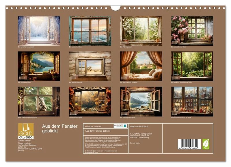 Jeder Monat zeigt Ihnen, Dank einer KI, eine faszinierende Aussicht aus verschiedenen Teilen der Welt. Ob Berge, Meer, Stadt oder Land, dieser Kalender gibt Ihnen das Gefühl, selbst dort zu sein! Lassen Sie sich von den wunderschönen Fotos inspirieren, genießen Sie die Einladung zum Träumen und entdecken Sie ferne Orte. Erkunden Sie die Welt, die sich draußen vor Ihrem Fenster abspielt! Dieser qualitativ hochwertige Kalender gehört zur exklusiven CALVENDO Gold-Edition