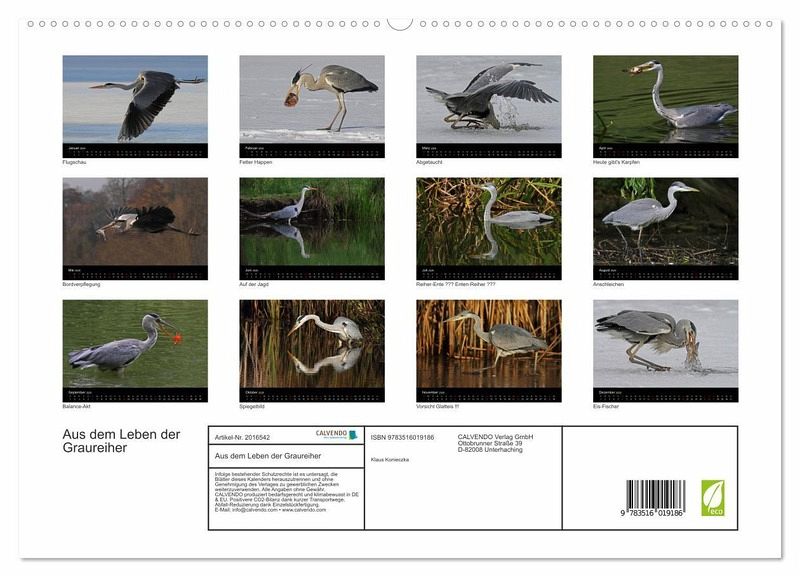 PREMIUM-LINIE - Brillanter Fotokalender mit 12 wunderschönen Motiven, Kunstdruck in Hochglanz in Museumsqualität.QUALITÄT - edle Materialien, stabile Rückwand mit 2 innovativen Einstecktaschen für eine optimale Präsentation an der Wand.NACHHALTIG - deutliche Abfallreduzierung durch bedarfsgerechte Einzelstückfertigung, umweltfreundliches FSC-zertifiziertes Papier, Produktion in Deutschland, klimabewusste Logistik.PERFEKTES GESCHENK - Kalender für Freunde und Familie, für Kinder und Erwachsene, jung und alt, zu Weihnachten, Geburtstag oder zwischendurch.Einblicke in das Leben der Graureiher von Autor(in): Klaus Konieczka
