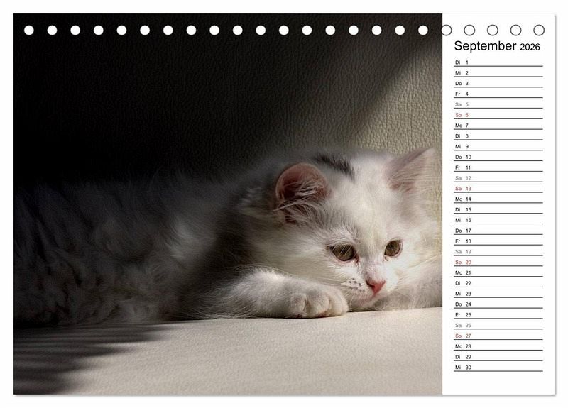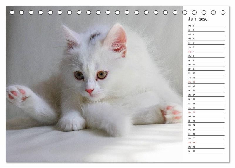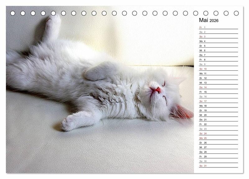Ein kleiner Einblick in die Kinderstube der Perserkatze. Viele Farbschläge gibt es in dieser Rasse. Hier die eher seltene Farbe Weiß. Was kann es schöneres geben als einen Kalender mit Planerfunktion des Lieblings zu besitzen.