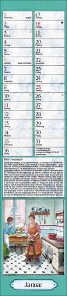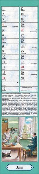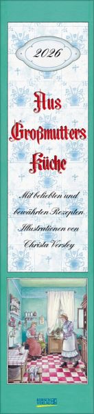 Praktischer Langplaner mit nostalgischen Küchenbildern von Christa Versley und beliebten Gerichten aus Großmutters Rezeptesammlung.
