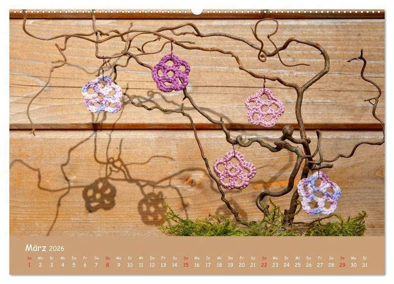 12 verschiedene Häkelarbeiten in der Natur fotografiert. Die Liebe der Autorin zur Handarbeit als auch zur Fotografie spiegelt sich in jedem Monat wider.