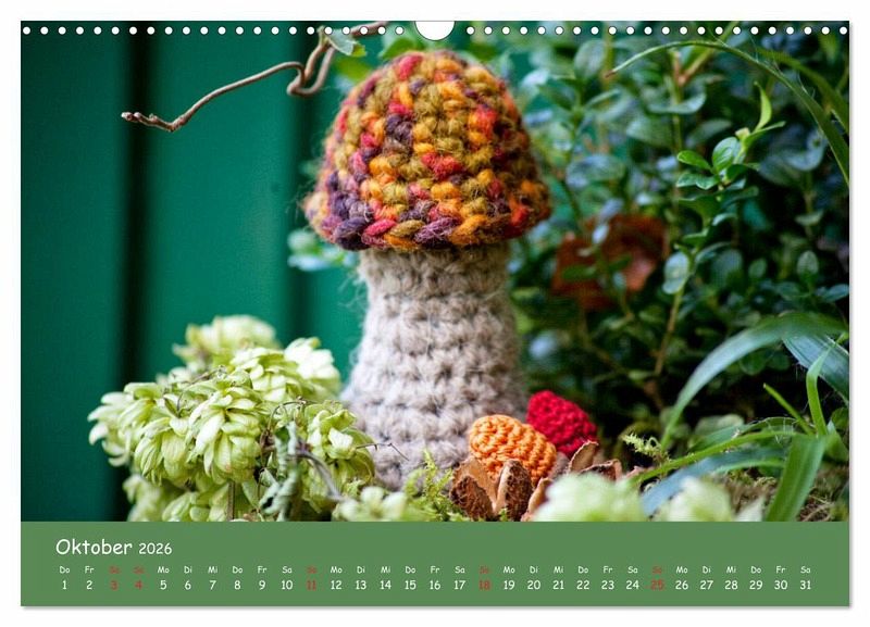 12 verschiedene Häkelarbeiten in der Natur fotografiert. Die Liebe der Autorin zur Handarbeit als auch zur Fotografie spiegelt sich in jedem Monat wider.