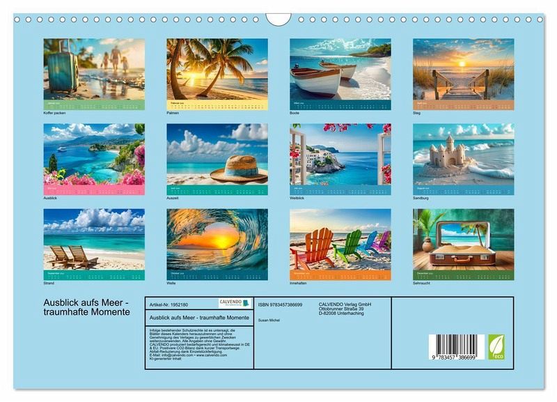 Tauchen Sie ein in die Schönheit der Natur und genießen Sie atemberaubende Ausblicke auf das endlose Blau des Meeres. Entspannen Sie sich, lassen Sie den Alltag hinter sich und lassen Sie sich von der Ruhe und Gelassenheit des Meeres verzaubern. Ob für einen romantischen Kurztrip oder einen erholsamen Urlaub - der "Blick aufs Meer" bietet Ihnen unvergessliche Momente und pure Entspannung. Ihr Traumurlaub beginnt hier! Dieser Kalender wurde mit Unterstützung der KI erstellt.