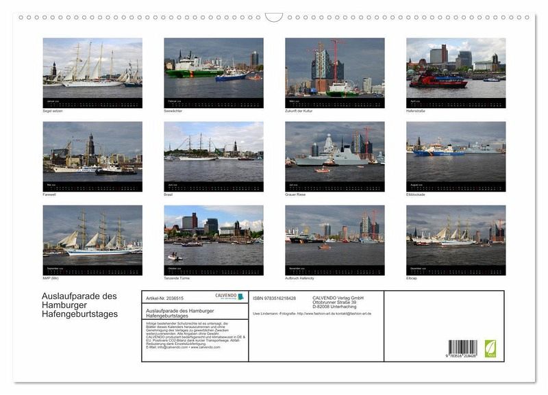 QUALITÄT - Hochwertiger Fotokalender mit 12 wunderschönen Motiven auf lichtbeständigem Bilderdruckpapier, robuste Spiralbindung mit Aufhängebügel.NACHHALTIG - deutliche Abfallreduzierung durch bedarfsgerechte Einzelstückfertigung, umweltfreundliches FSC-zertifiziertes Papier, Produktion in Deutschland, klimabewusste Logistik.PERFEKTES GESCHENK - Kalender für Freunde und Familie, für Kinder und Erwachsene, jung und alt, zu Weihnachten, Geburtstag oder zwischendurch.VIELFALT - Bildkalender in verschiedenen Formaten, z.B. DIN A5, DIN A4, DIN A3 sowie DIN A2. Ob Naturmotiv, Gemälde oder Fotos, ideal für ein persönliches Wohlfühlambiente.Bilder der Auslaufparade im Hamburger Hafen von Autor(in): Uwe Lindemann